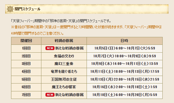 15日間の間に少しのインターバルを挟みつつ絶えず天獄が開門します。